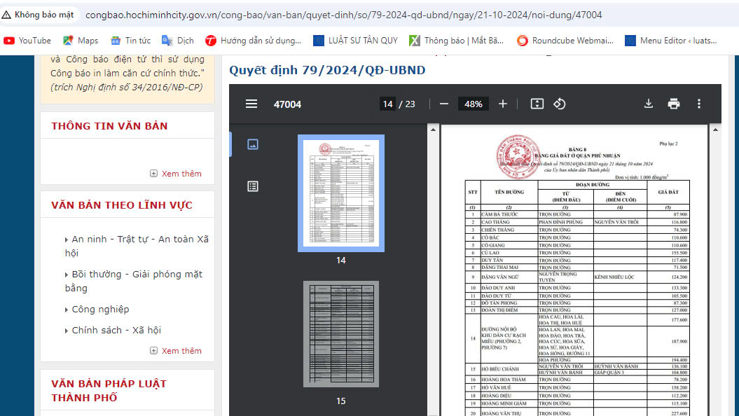 Quyết định số 79/2024/QĐ-UBND của Ủy ban nhân dân Thành phố Hồ Chí Minh Về sửa đổi, bổ sung Quyết định số 02/2020/QĐ-UBND ngày 16 tháng 01 năm 2020 của Ủy ban nhân dân thành phố quy định về Bảng giá đất trên địa bàn Thành phố Hồ Chí Minh Giá đất ở: vị trí 1 tại Bảng…